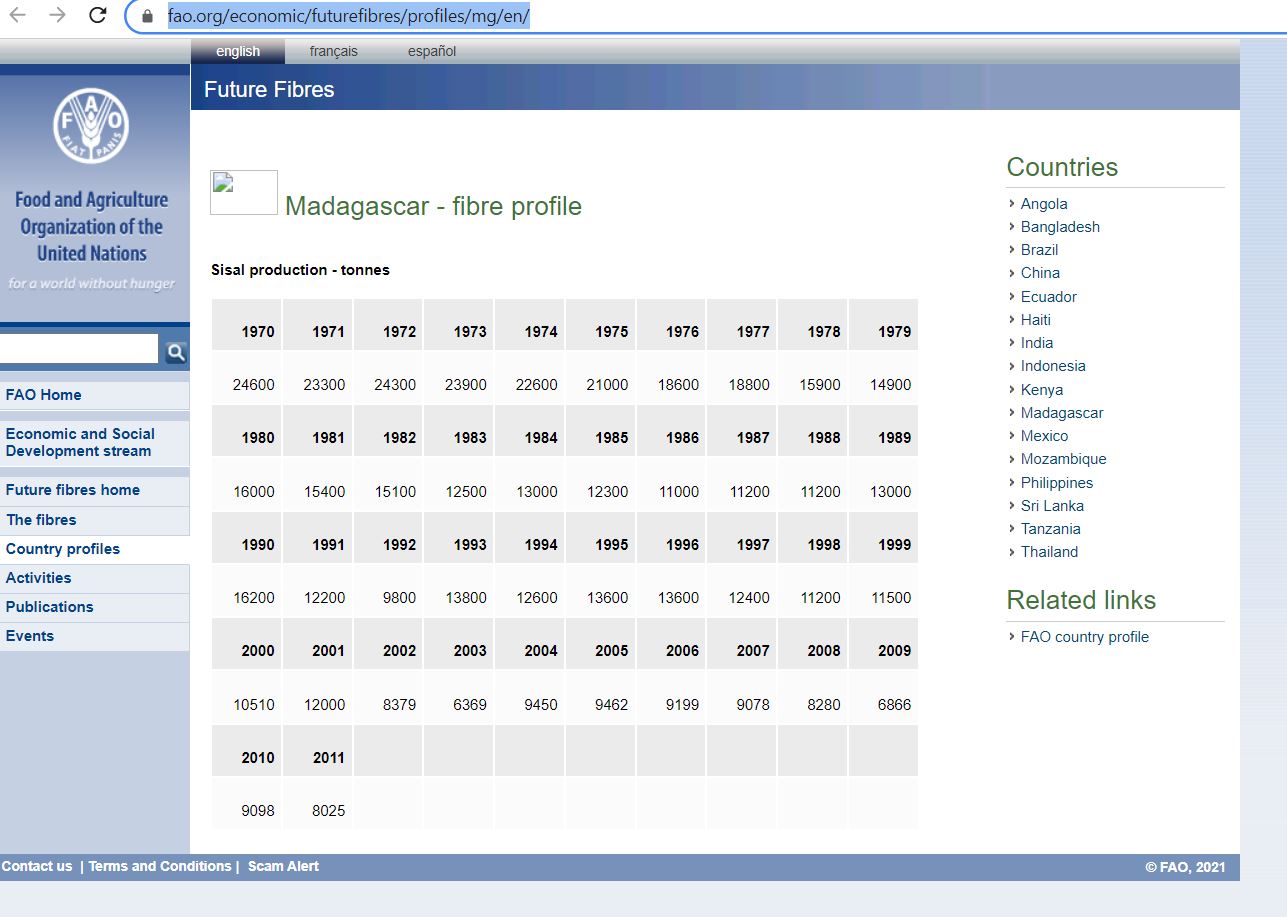Production annuelles en tonnes de sisal à Madagascar à partir de 1970